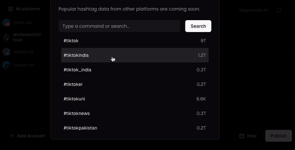 For TikTok, you can also search for popular hashtags and see their trendiness. You will see how many times the hashtag has been used.