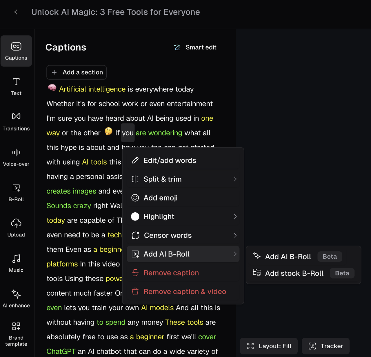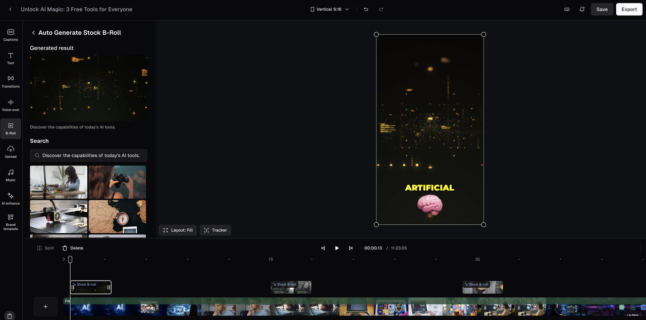 - Toggle it on, and our AI will automatically add AI B-Roll to your video