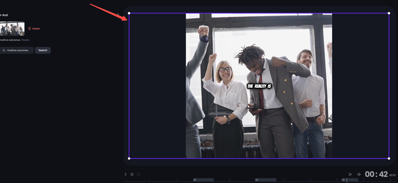 You can take control and center elements in your B-Roll exactly how you envision. Just click on the B-Roll, drag and reposition it!