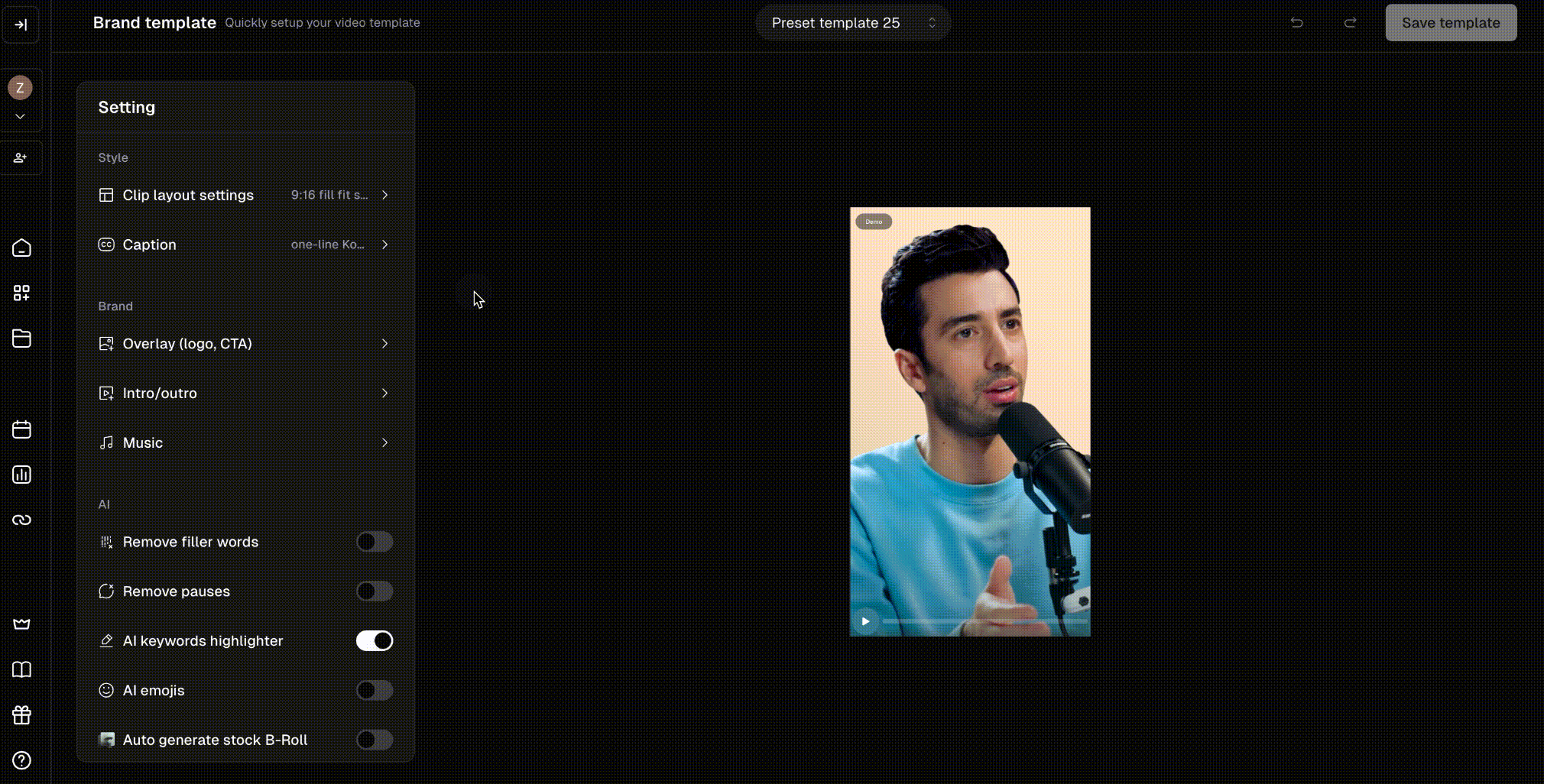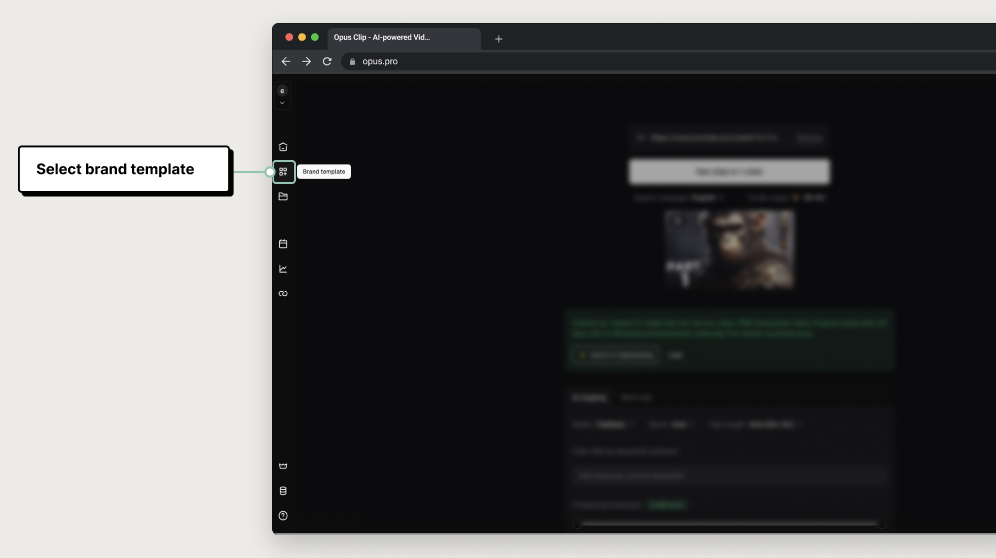 You can set up various Brand Templates with your brand color, fonts, logos, and more to make your clips on-brand and more recognizable. To set up your brand template, click Brand Template on the left side panel.