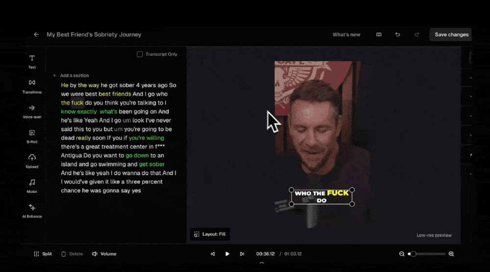 Sensitive language in your content can pose risks when publishing to platforms. With one click, you can easily manage curse words in your video. This feature processes both captions and corresponding audio, ensuring your content is safer and more platform-friendly.How can I automatically censor curse words?