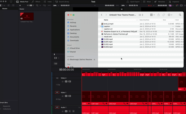 - A ‘.xml’ file containing the generated clip content with auto captions, auto reframe and B-Rolls(if has)