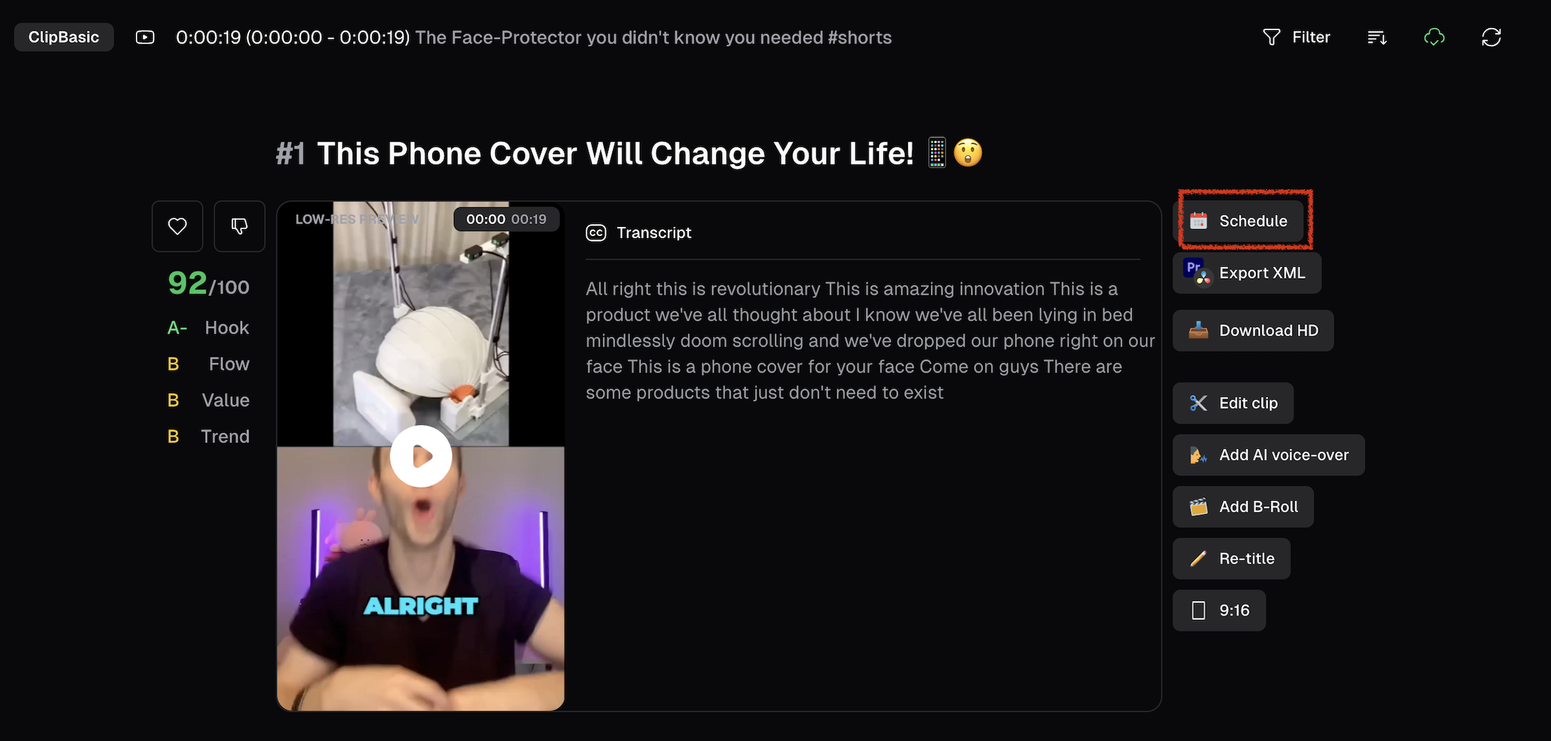 You can schedule and post your clips to your social platforms directly from the results page: