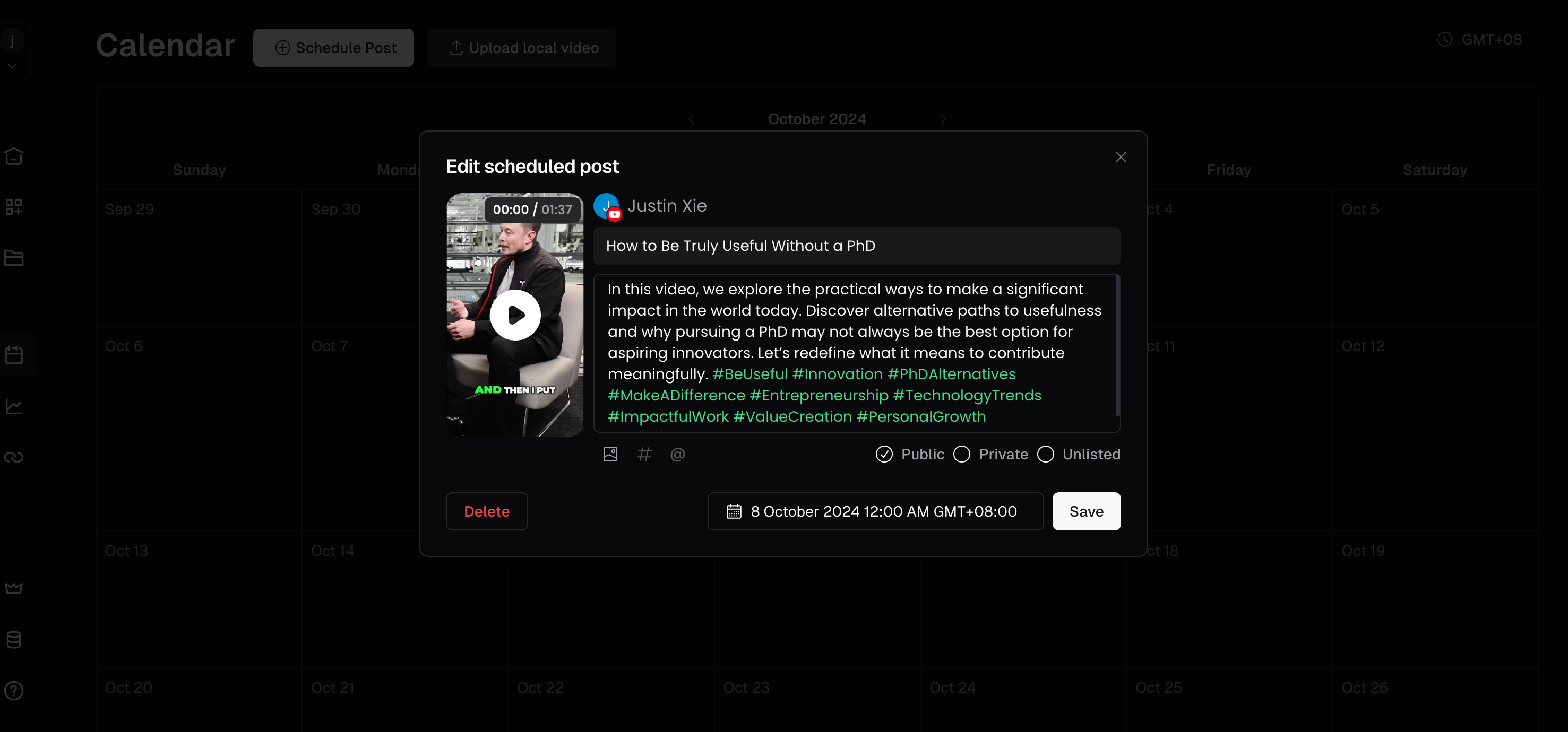 - Find your scheduled post in the calendar and click on it.
