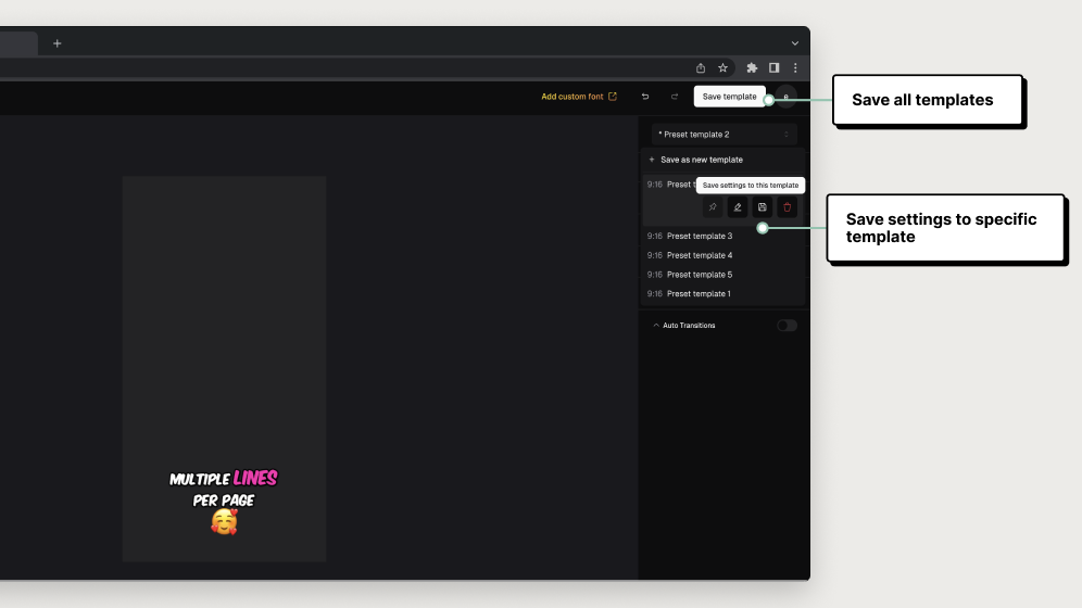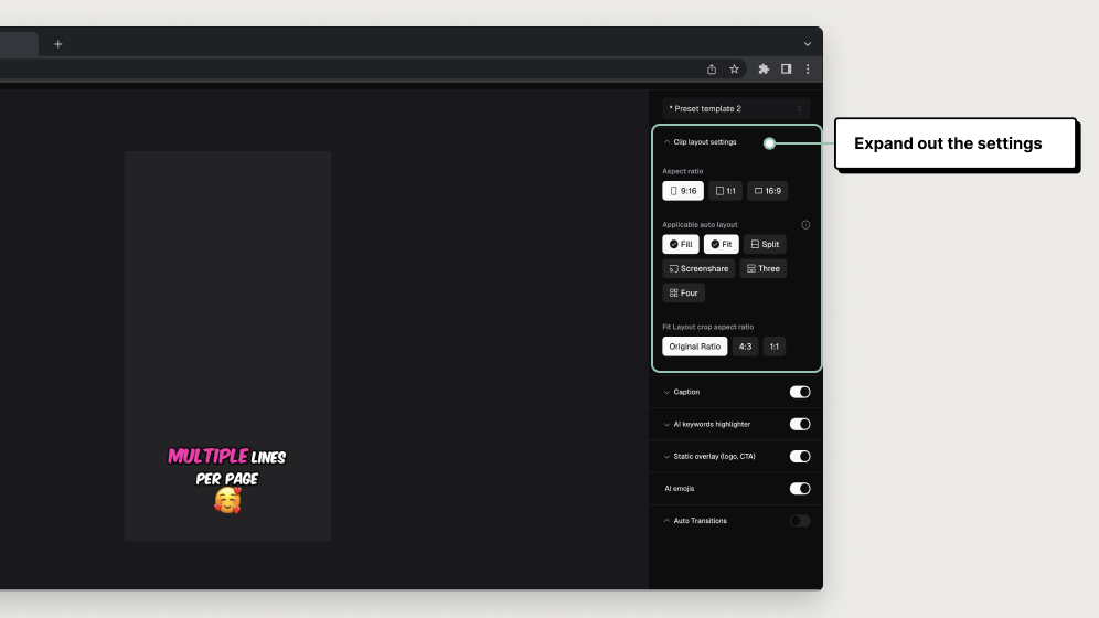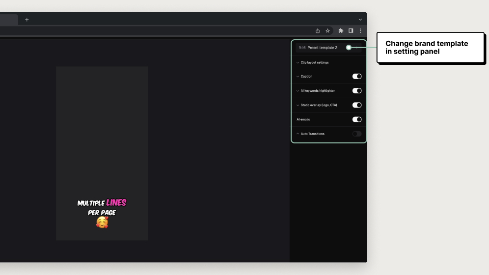 Brand template is a place where you can set up your branding preferences and apply them to all of your clips. To set up your brand template, click the icon below the house icon or visit here. On the Brand Template page, you can set up your preferences. Users are able to set up 2 brand templates.